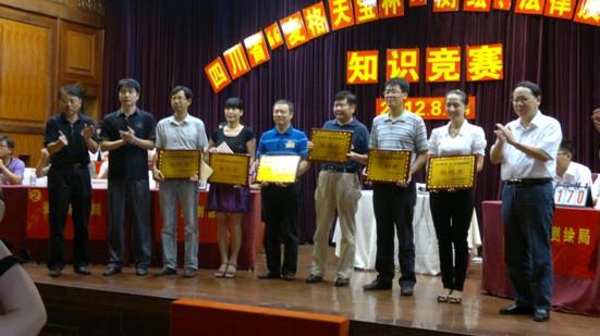 各参赛队在比赛中尽展自我风采,尤其抢答环节凸显了团队之间的默契配合,整场比赛紧张激烈、精彩纷呈,选手们的优异表现赢得场下观众的欢呼和掌声。经过激烈角逐,四川省第一测绘工程院代表队以总分240分的绝对优势赢得一等奖,资阳市测绘局、省遥感信息测绘院代表队均以200分获二等奖,遂宁市测绘地理信息局、成都市勘察测绘研究院、四川省地质测绘院代表队获得三等奖,其余代表队获组织奖。省局副局长余国珊、巡视员安英选、麦格集团天渱公司副总孙仁锋为获奖队员颁了奖。