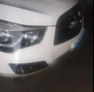 水位持续上涨,为了项目用车的安全,他们蹚过及膝洪水,